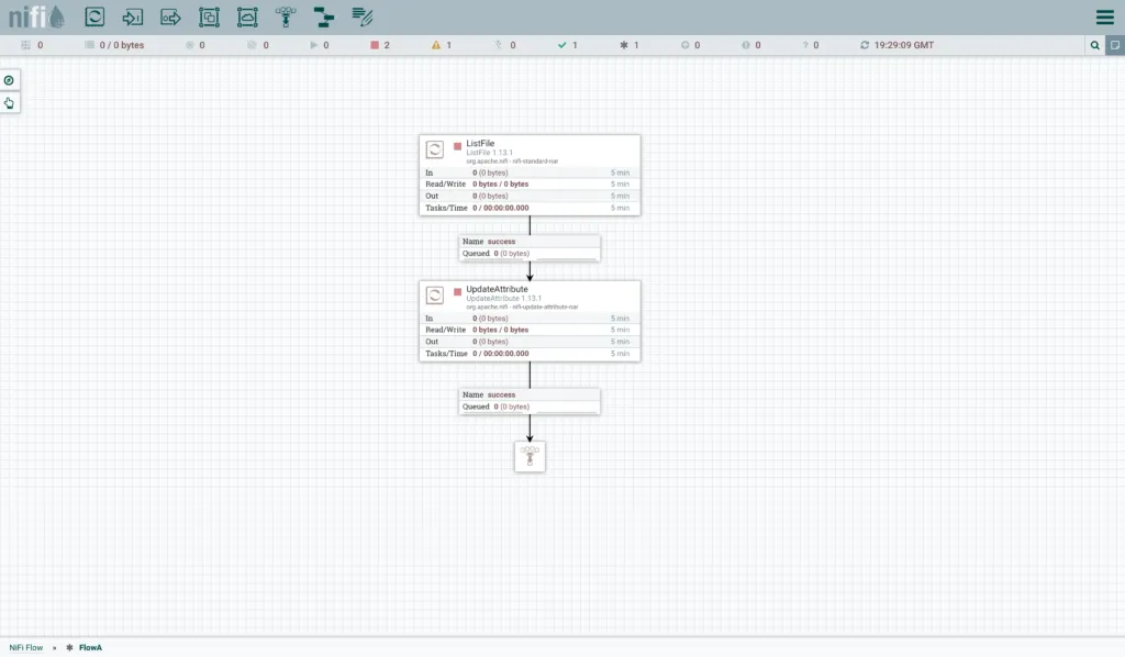 Now, back in Dev NiFi, make some changes to the flow. I have added an UpdateAttribute processor.