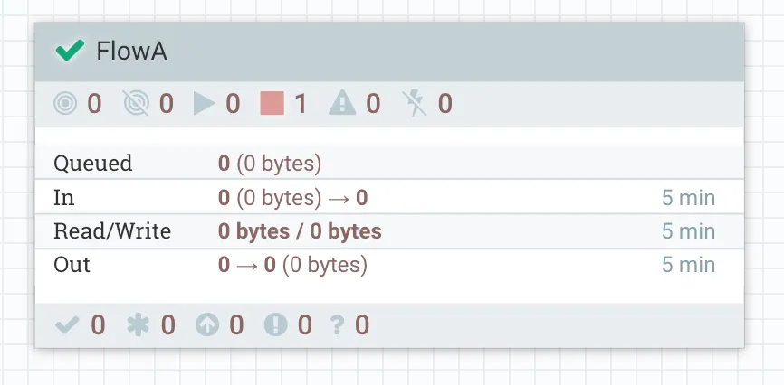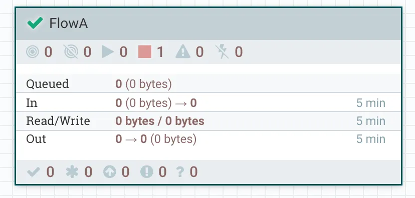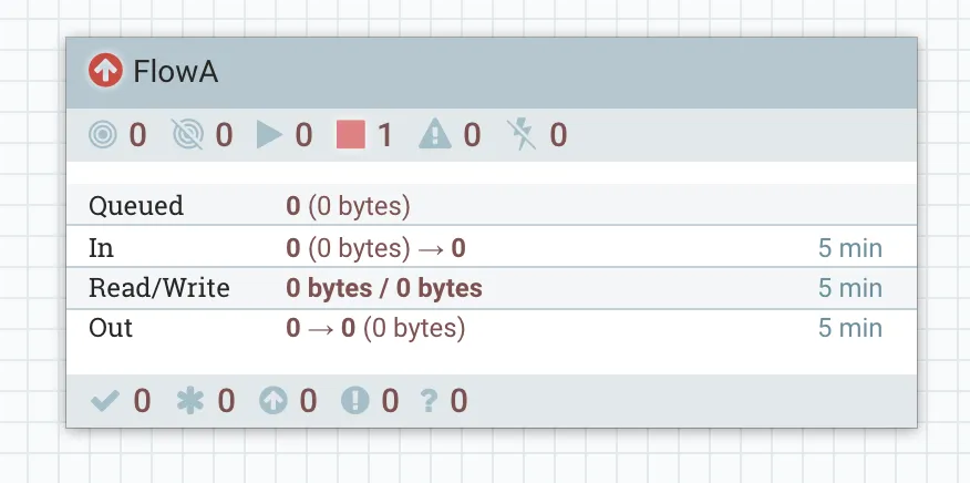 Back in Prod NiFi, the flow we imported from NiFi Registry now shows a red arrow icon, indicating there is a newer version of this flow available.