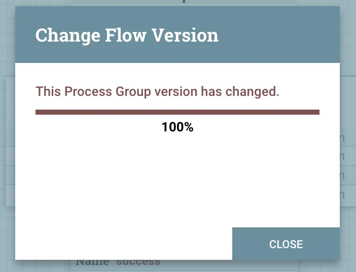 A progress box will open. When you upgrade a flow to a new version, it will stop all processors in the flow.