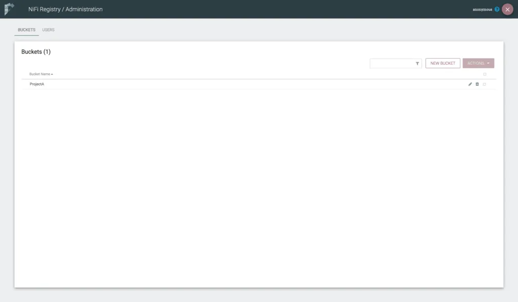 We see an empty list of bucket. We click NEW BUCKET to add a bucket for our flows.