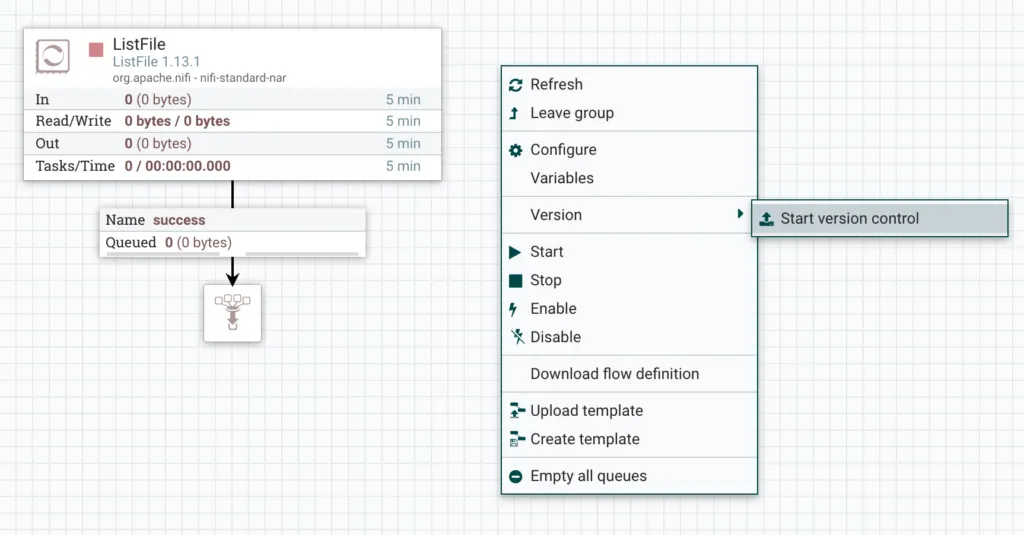 Let’s walk through the process. This assume you have a working NiFi and NiFi Registry already installed, I am using NiFi 1.13.1 and Registry 0.8.0. If you don’t, here’s some helpful links: