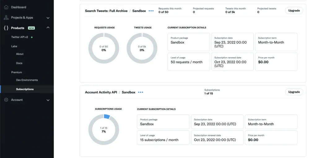 With that done, we next need to create the account subscription which can only be done via the Twitter API.